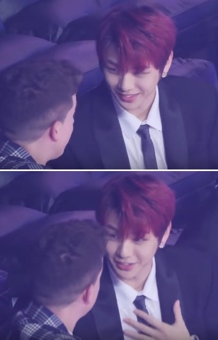 메이크업 담당자 : 왜 더 해줘? 더 해줄까?ㅋㅋ(다니엘 웃으니까본인도 웃으면서 어깨 톡) 웃지 말고ㅋㅋ