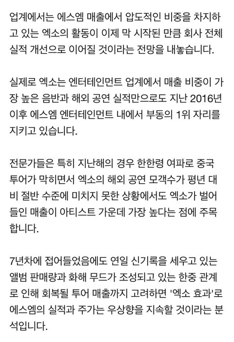 스엠 내 매출 1위 엓소