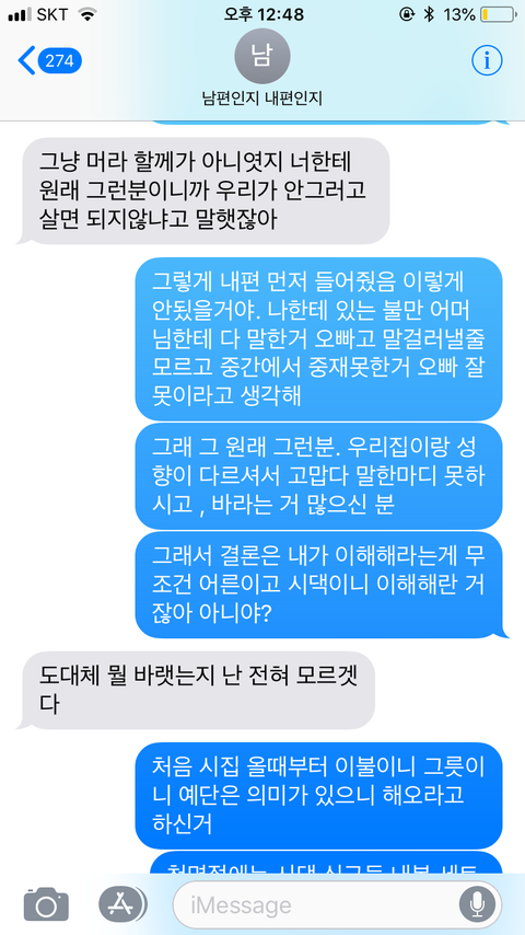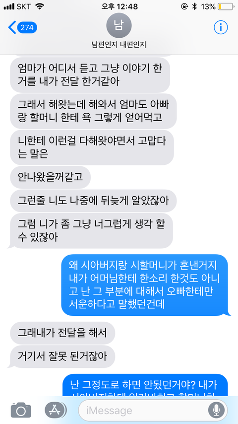 "그럼 어머님도 제가 장난으로 속아서 결혼했다는 말을 우리 신랑한테 사기결혼을했다니 어쩌니 어머님이 먼저 시댁 깐거는 쏙 빼놓고 말하시냐고"