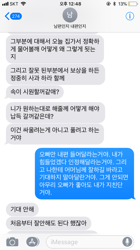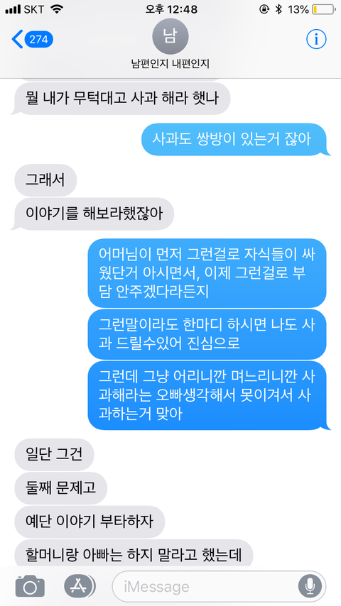 신랑은 계속 제가 먼저 시댁에 사과하길 바라는 눈치네요.