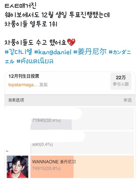 탑 스 타 매 거 진 12월 강다니엘 생일퉆 한국2위 / ㅇㅇㅂ 1위
