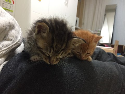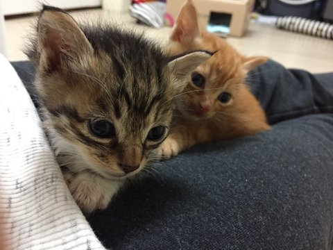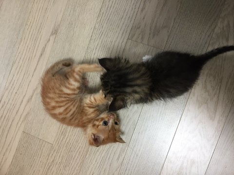 우리집 아가들은 올해 4월 어느 추운 날 재활용쓰레기더미 속 상자에 버려진 유기냥이었습니다.