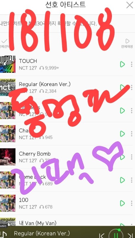 음원발매일부터 스밍한 레귤러 포함 수록곡 누적횟수