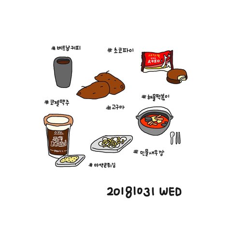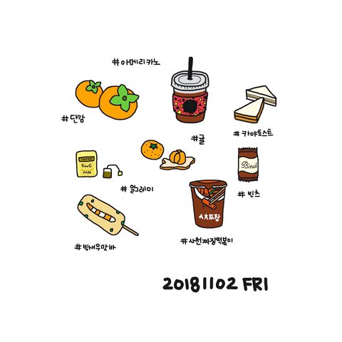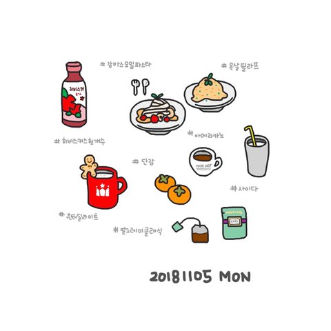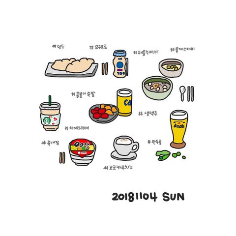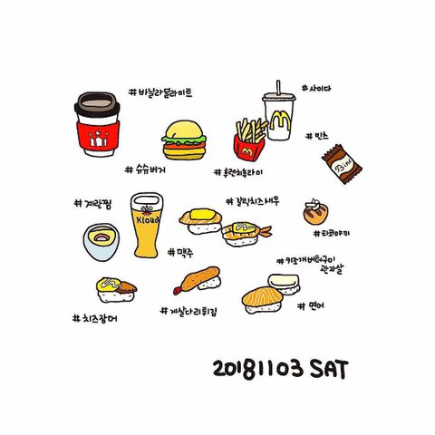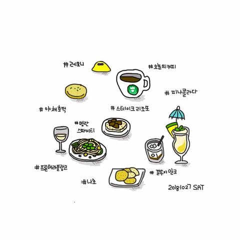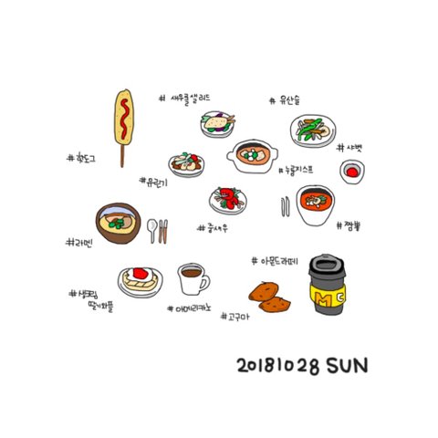 매일 먹은 음식들을 그림일기로 기록하고 있어요!