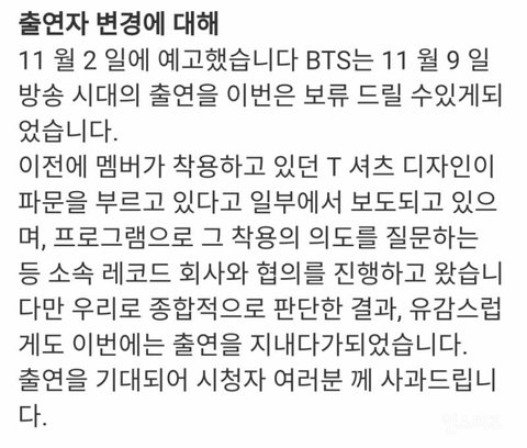방탄 엠스테취소 / 트와이스 홍백 참가취소 ㅋㅋ