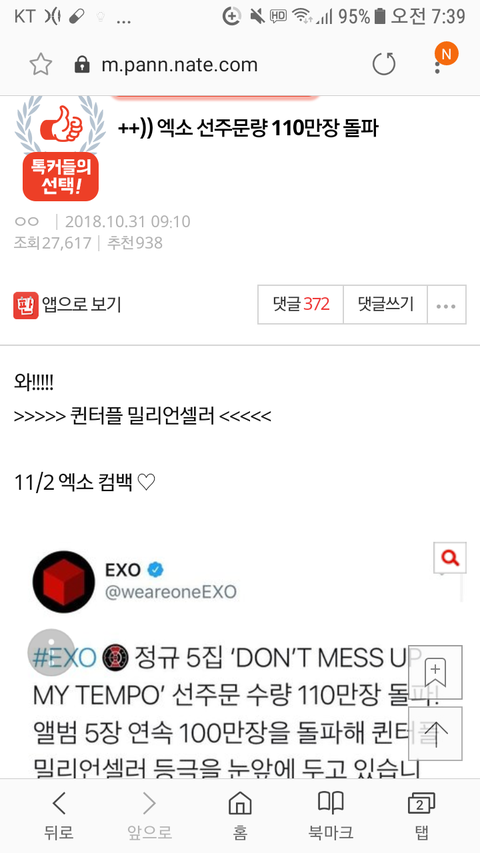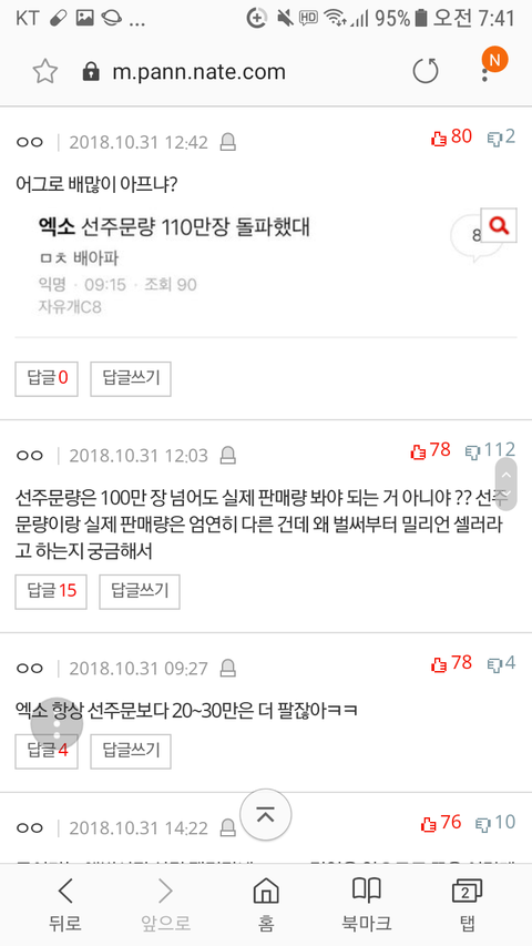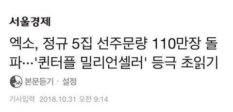 아니 타팬인데 저거 엄청 대단한거야... 요즘 시대에 저만치 파는 가수들이 얼마나 된다고... 진심 초동 몇십만장 나와도 엄청 엄청 대단한 건데 매번 어그로들 후려치기 때문에 팬들끼리의 자축 분위기에 찬물 끼얹는 것도 한두번이지 진짜 그럴 시간에 어그로 니 본진 스밍이나 한번 더 돌리고 앨범이나 한장 더 사는 게 니 인생에도 니 본진에게도 퍽이나 도움되지 않겠어?.. 팬덤들은 어그로들 기대치에 전혀 맞출 필요가 없음.. 엑소엘들 자체 기록 경신했다고 들었는데 축하하고 주위 신경쓰지말고 니네끼리 자축하면 될 일임.. 세상 어그로들 죽을 때까지 탈모╋무좀╋치질(치료안됨 죽을 때까지 재발100%) 콤보로 질질 짜는 인생 살길 바란다 진심으로