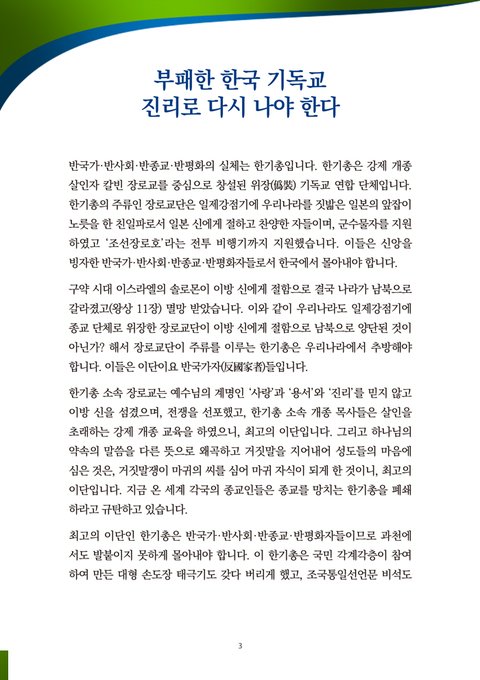 부패하고 낡은 전통 교단 한기총의 거짓됨과 부패를 국민 여러분께 고발합니다.
