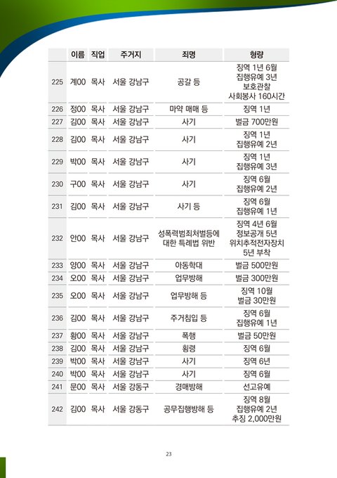 ■ 살인, 폭행, 납치, 감금 등 인권유린적 강제 개종 교육을 조장하는 집단입니다. 신천지예수교회의 급성장에 생존의 위협을 느낀 한기총은 신천지예수교회에 대해 거짓말을 지어내어 유포했고, 한기총 소속 개종 목사들은 폭력, 감금, 납치를 수반하는 인권유린적 강제 개종 교육을 실시하고 있습니다. 개종 목사들은 먼저 청년 부모들을 미혹하고 사주하여, 그 자녀의 입에다 반창고를 붙이고 손과 발에 수갑을 채우고 원룸에 감금하게 하고, 인신공격적 거짓말로 개종을 강요하고 있습니다. 또 강제 개종 과정에서 부모를 시켜서 강제로 휴학, 휴직 등을 시키고, 신천지에서 휴학, 휴직, 가출 등을 조장한다고 뒤집어씌우고 있습니다.