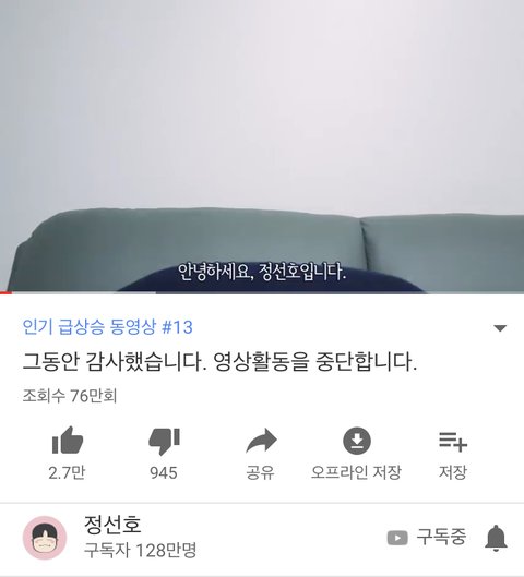 내가 구독하는 몇 안되는 유튜버 중 한 분이었는데