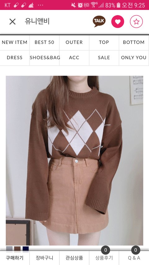 갈색 아가일에 베이지 일자바지 ㅇㄸ??니트 목폴라로하고싶었는데 목이 거의 없을정도로 짧아서 못입어서 아쉽다 ㅠ 사진은 내가 사려는건데 둘조합 괜찮아??
