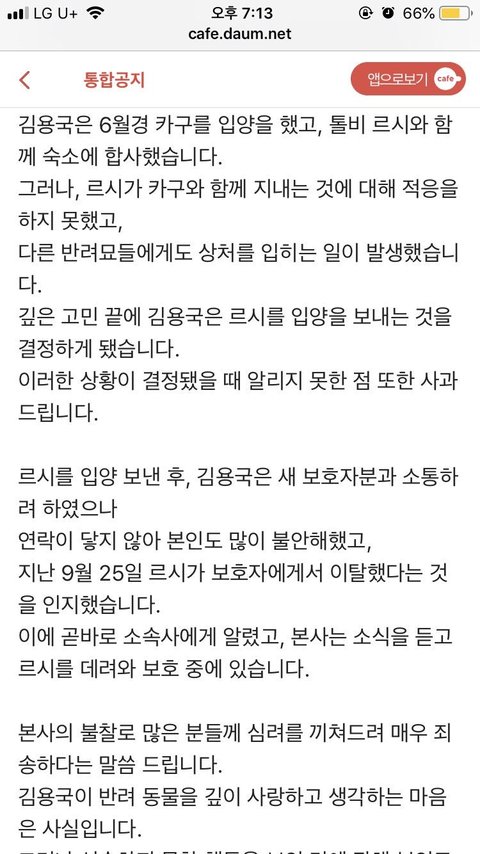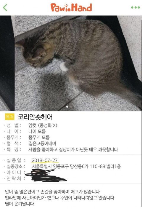 ++)) 르시가 유기된건지 가출한건지는 모르지만 처음 유기묘 카페에서 팬분이 발견하신건 9월쯤이었고 추석 연휴에 춘이랑 연락이 닿아서 데려갔대