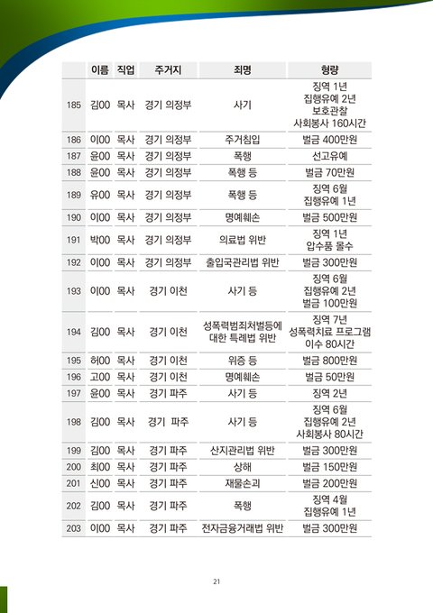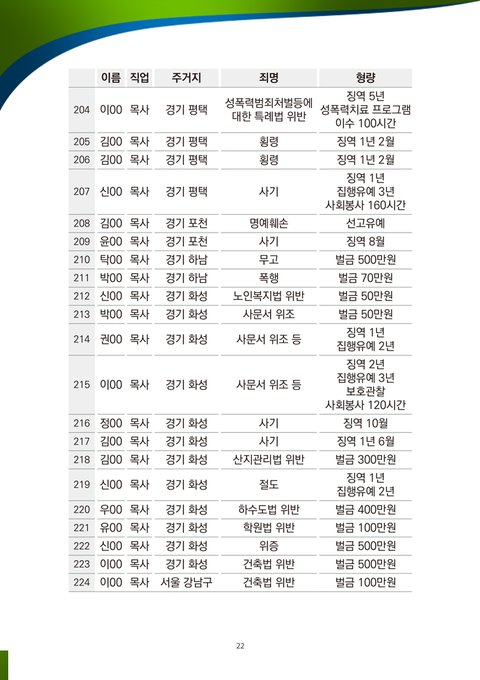 ■ 살인, 폭행, 납치, 감금 등 인권유린적 강제 개종 교육을 조장하는 집단입니다. 신천지예수교회의 급성장에 생존의 위협을 느낀 한기총은 신천지예수교회에 대해 거짓말을 지어내어 유포했고, 한기총 소속 개종 목사들은 폭력, 감금, 납치를 수반하는 인권유린적 강제 개종 교육을 실시하고 있습니다. 개종 목사들은 먼저 청년 부모들을 미혹하고 사주하여, 그 자녀의 입에다 반창고를 붙이고 손과 발에 수갑을 채우고 원룸에 감금하게 하고, 인신공격적 거짓말로 개종을 강요하고 있습니다. 또 강제 개종 과정에서 부모를 시켜서 강제로 휴학, 휴직 등을 시키고, 신천지에서 휴학, 휴직, 가출 등을 조장한다고 뒤집어씌우고 있습니다.