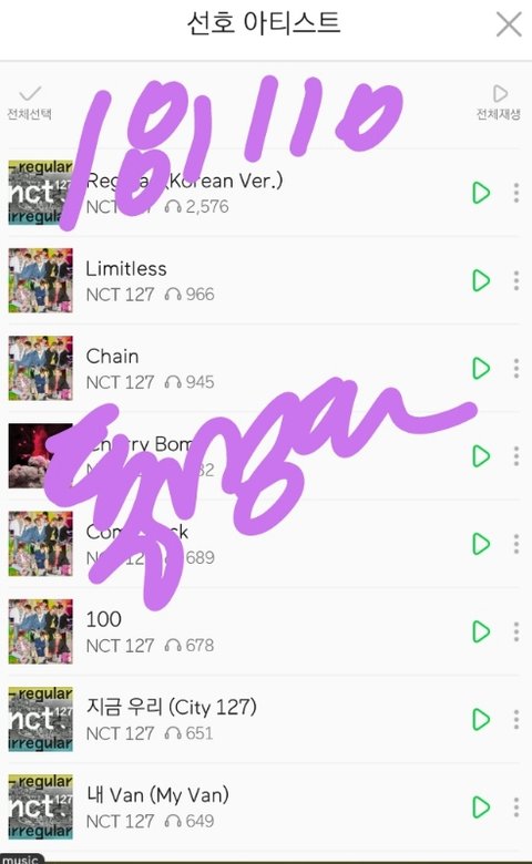 음원발매일부터 스밍한 레귤러 포함 수록곡 누적횟수