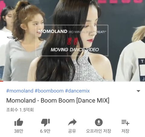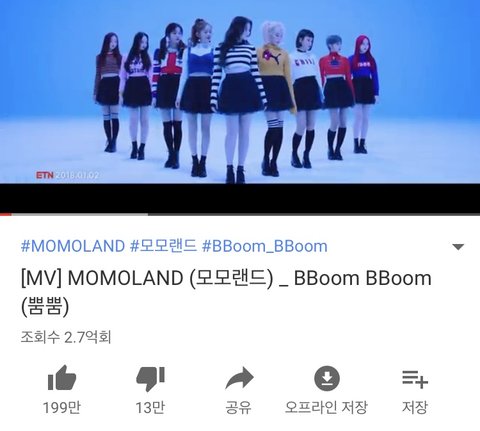 는 모모랜드. 모모랜드는 주이 트로피카나 이후로 조금씩 뜨기 시작했지 그전에는 모모랜드 하면 아는 사람 찾기 힘들 정도로 흔히 말하는 듣보잡 걸그룹이었음. 하지만 뿜뿜 이후로 급성장함. 뿜뿜 이전과 이후를 비교해 보자면,