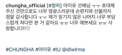청하 입장에서는 엄청 영광일듯 ㅜㅜㅜ 대선배 콘서트에 게스트로 초대받고 편지까지 받다니....
