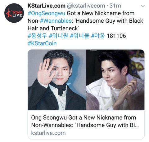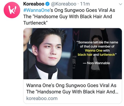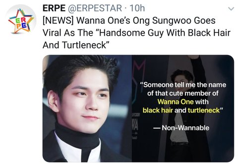 핸썸가이 윗 블랙헤어 앤 터틀넥ㅋㅋ (지니시상식에서 블랙헤어에 터틀넥을 입고나타난 옹보고 외국팬이랑 머글들이 잘생겼다고 쟤 누구냐고 하도물어봐서 생긴말ㅋㅋㅋ)
