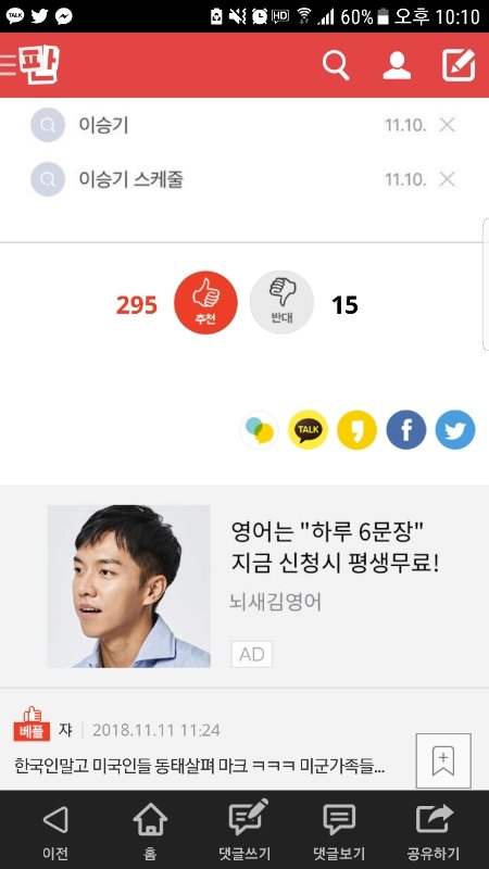 나 이승기 스케줄 찾아보고 있음ㅋㅋㅋㅋ 이승기 사주가 전쟁도 피해가는 사주라길래 ㅠ 제발 한국에 있어달라고 비는중임 ㅠㅋㅋㅋ 톡선글 때문에 불안에 떨면서 살아간다 ㅆㅂ^^