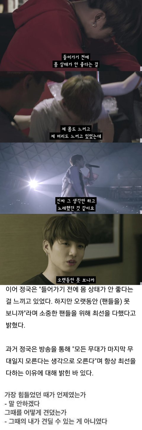 열심히 무대하고 열심히 인사하고 절뚝거리면서 들어가는 정국이