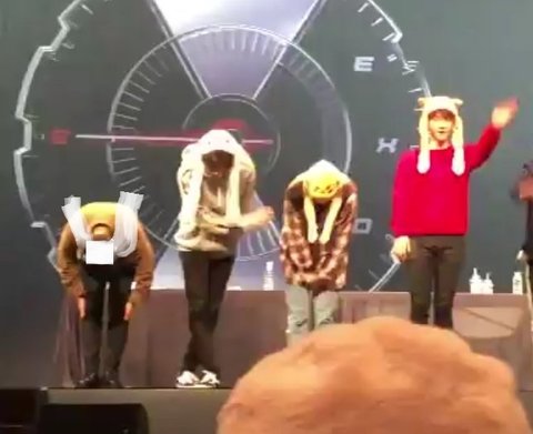 맨 왼쪽 경수. 토끼 모자 귀가 중력을 거스린건 이해 바람