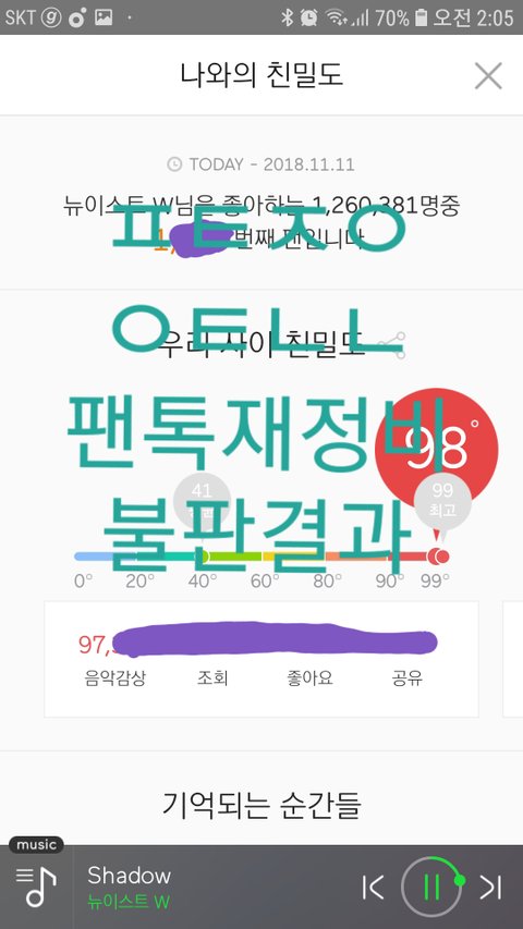 ✔스밍인증완화는 기존 ㅇㅈㅌ스밍인증에서 1곡의 현재스밍화면을 캡쳐하여 팬톡전용,엔터금지,오늘날짜,글제목이 낙서되어 있어야해
