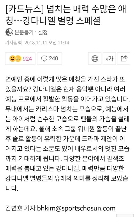 넘치는 매력 수많은 애칭…강다니엘 별명 스페셜