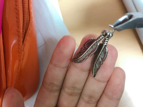 아까 준비물에 나왔던 사진 보면 귀찌 위에 동그란 원이 있지? 그게 오링이나 마찬가지라 오링이랑 똑같이 열고 체인에 연결!!