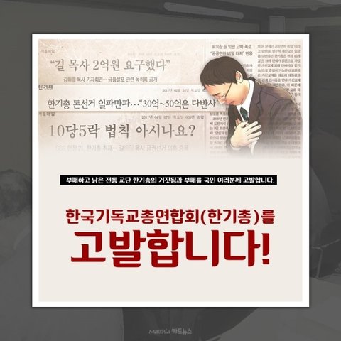 부패하고 낡은 전통 교단 한기총의 거짓됨과 부패를 국민 여러분께 고발합니다.