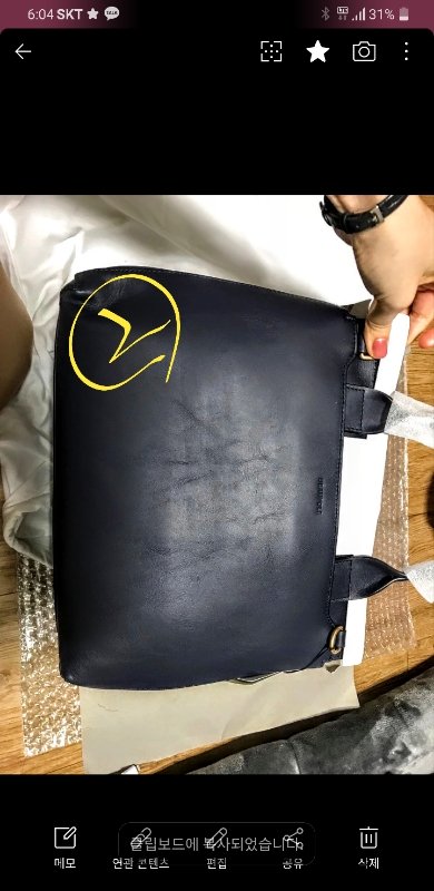 *세번째 온 상품 > 가방 앞판 열고 닫는 버튼쪽 가죽 주름 및 가방 왼쪽 상단 가죽 2줄 울었음 + 뒷판 주름