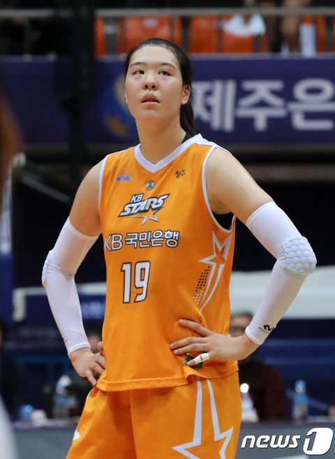 박지수는 신장 198cm의 장신으로 한국여자농구의 보물 센터로 불리운다.