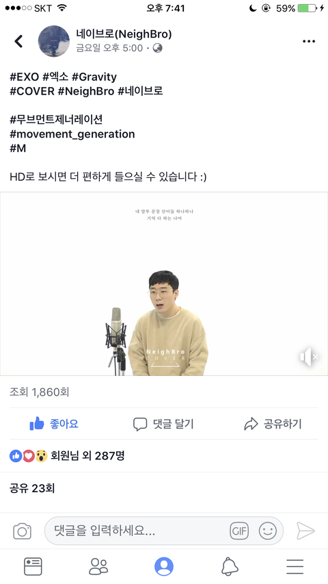 얼굴책에서 그래비티 커버영상 봄?+ 링크추가 +추추가