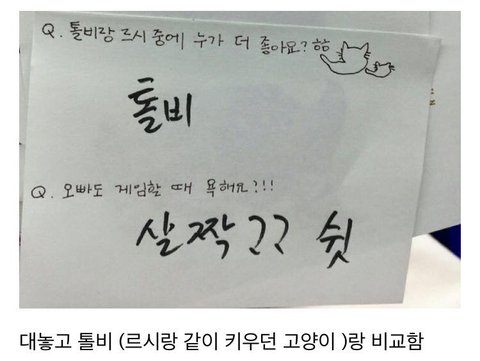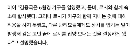 ㅋㅋㅋㅋㅋㅋㅋ 보통은 합사가 안되면 맨 마지막에 데려온 애를 입양 보내는 게 맞지 않냐 이거 다 변명이고 품종묘 따져서 노르웨이숲인 카구 냅두고 믹스묘 르시를 갖다 버린 거임 ㅋㅋㅋㅋㅋㅋ ㅁ;친새1끼