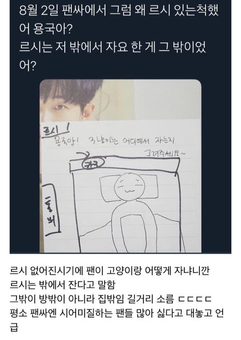 4. 8/2일 팬싸에서 팬이 르시 외에 다른 고양이들 어디서 자는지 그려달라고 했을 때도 르시를 그림.