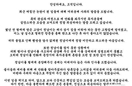 사과문도 올려서 입장정리가 끝난 줄 알았는데요.