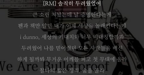 이런것들 보고 최근 방탄이 쓰는 가사들 보면 자신들이 직접 겪었기에 우리한테 더 말해주고싶고 더 잘 말해줄 수 있었던 것 같아.