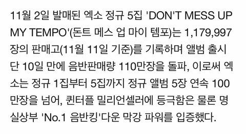 엑소, 국내 누적 음반판매량 1,000만장 돌파