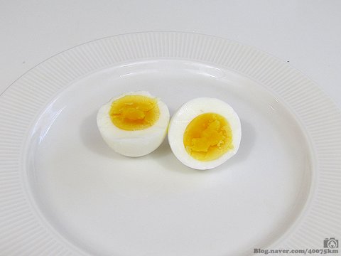 가장 친숙한 달걀 완숙, 하드 보일드 에그입니다. 동영상 찍느라 바빠서 조금 일찍 꺼냈더니 가운데 부분은 아직 살짝 주황색 기운이 남아있네요.