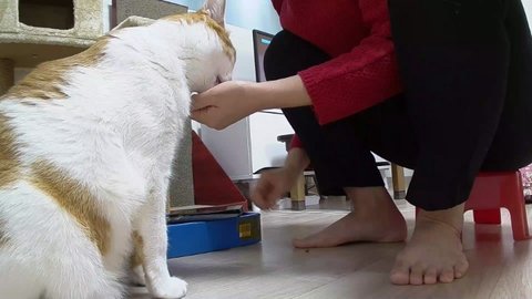 집사의 더러운? 발을 본인의 깨끗한 발 위에 올리지 마라..