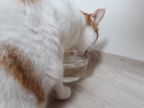 혀로 물그릇 벽을 부딪치며 마심.