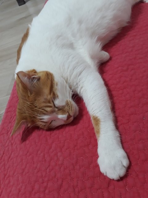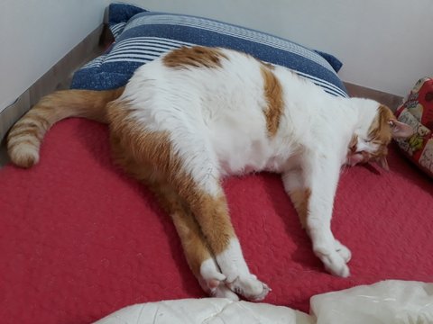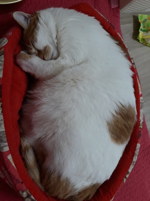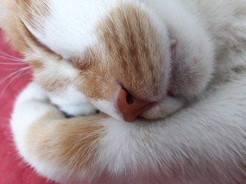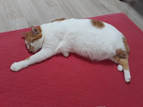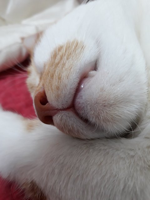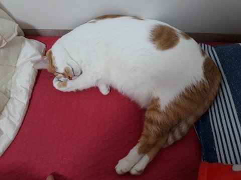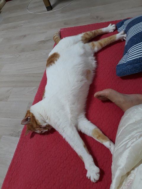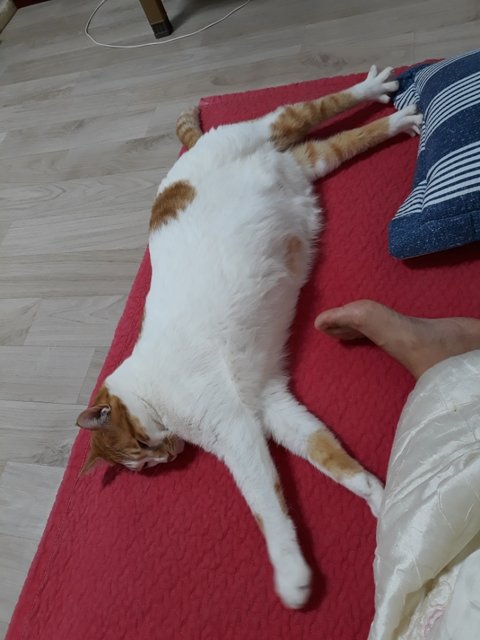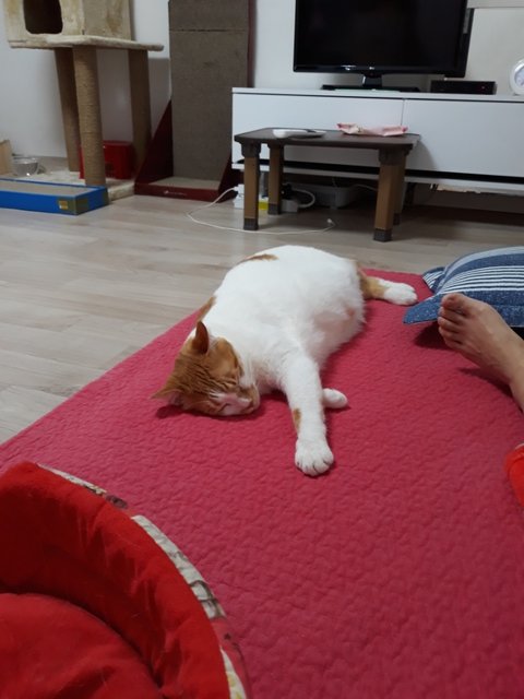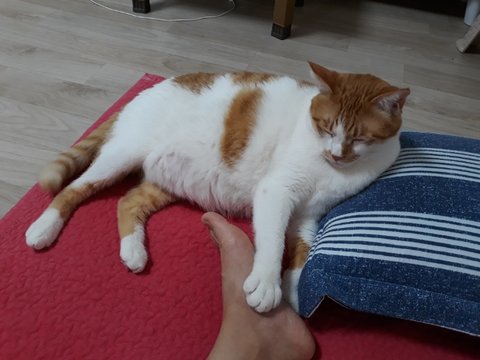 도칠이가 잠들었길래 집사는 발을 이용해 도칠이의 부드러운 털을 만져보았음.
