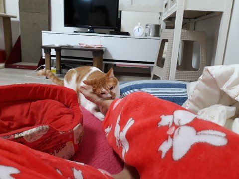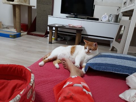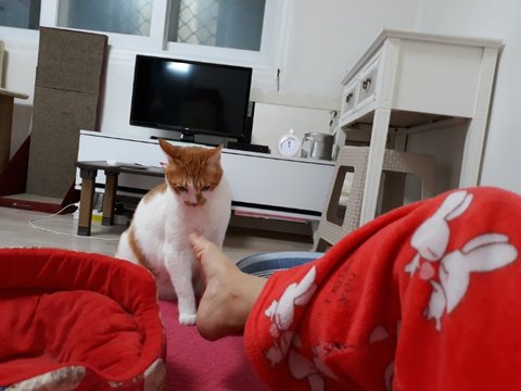 본인 떵냄새보다 집사 발냄새가 더 심하다고 난리를 치고 있는중임.