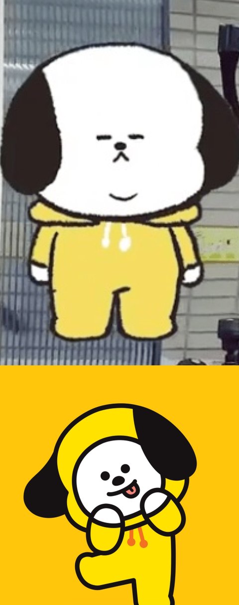 아래는 댄써로서의 날렵함과 지민이의 깜찍함과 귀여움을 더 반영했다면 위는 지민이의 포근하고 순한 성격과 쪼금의 엄근진 성격을 반영하고 있어 아랫캐는 좀더 객관화된 거랄 수 있지