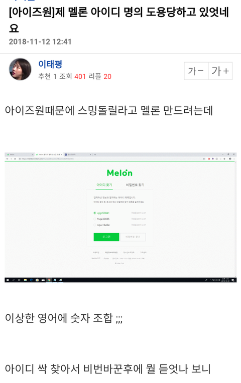 그리고 자꾸 고소 할거라고 협박하는 에리들아 멜론 해킹이 사실이면 멜론 보안이 허술한거 멜론쓰는 입장에서 큰 문제인데 뭘 자꾸 덮으려고 난리야? 고소무새 때문에 공정하게 의견 올리려다가도 위즈원쪽으로 마음 기울겠다 ㅉㅉ