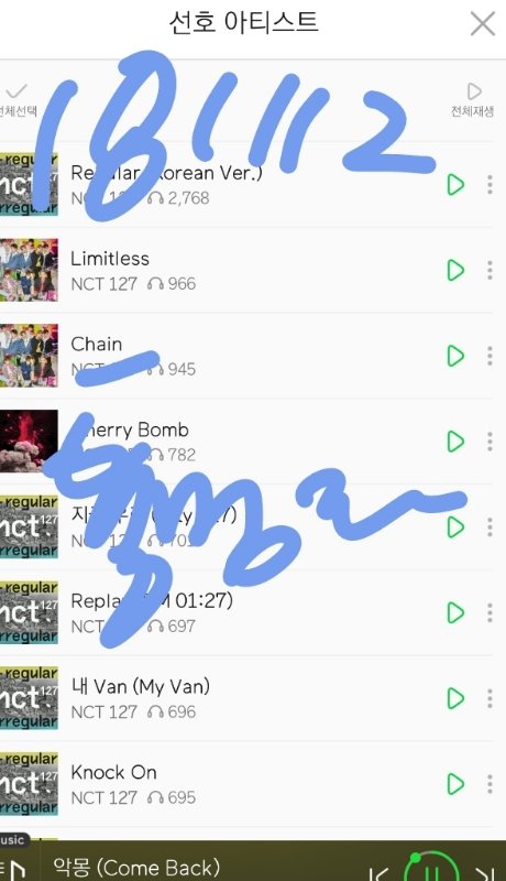 음원발매일부터 스밍한 레귤러 포함 수록곡 누적횟수