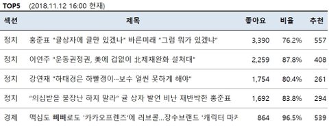 답답한 정치기사들 틈에서 발랄한 경제기사가 top5안에 든 이유.