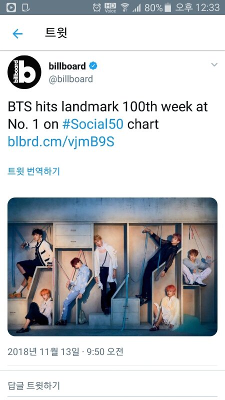 봤겠지만 답글짹도 훈훈해서 데려옴 https://twitter.com/billboard/status/1062145554598244352?s=19