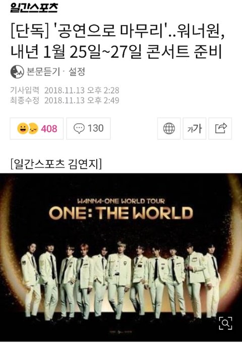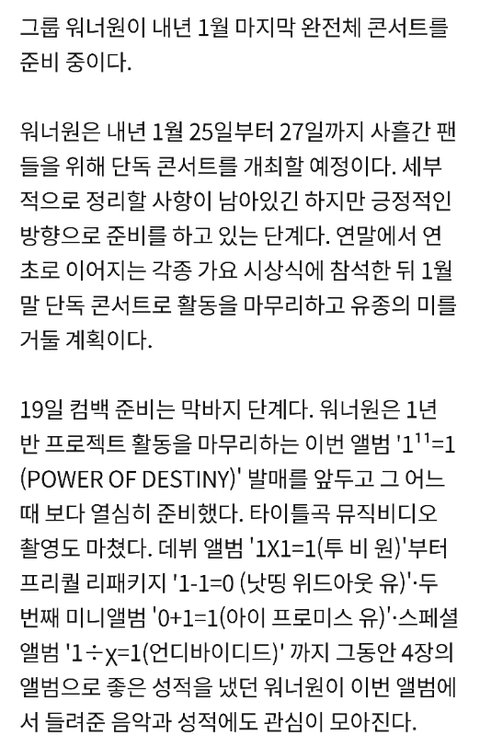 기사) '공연으로 마무리'..워너원, 내년 1월 25일~27일 콘서트 준비