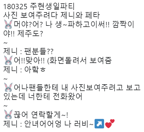 아이린이 스케줄로 못왔는지 제니한테 선물 보냄