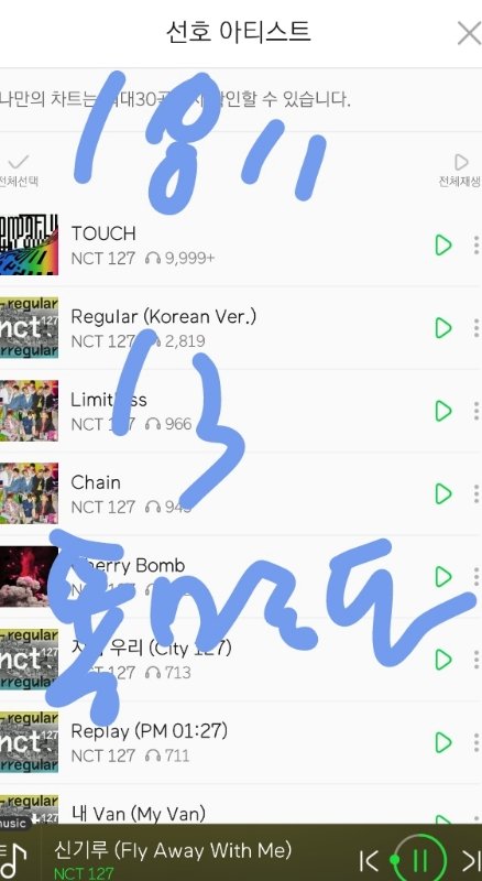 음원발매일부터 스밍한 레귤러 포함 수록곡 누적횟수