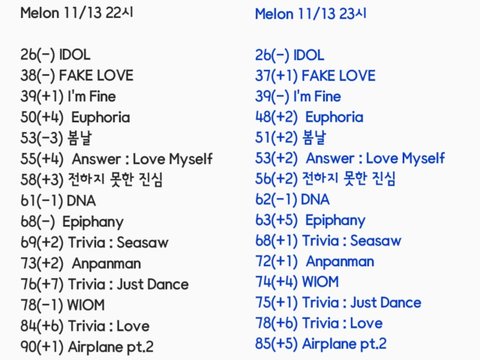 멜롱 22시->23시 차트 현황 (둘셋은 어디에??)
