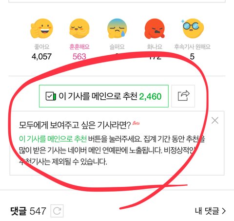 댓쓰고 훈훈해요 누르고 기사 메인추천